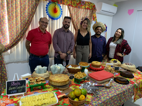 Sob a temática tradicional das festividades juninas, a celebração contou com uma decoração colorida e acolhedora, trazendo todo o charme e o espírito da temporada junina para o ambiente corporativo. Balões, bandeirinhas e enfeites típicos foram cuidadosamente dispostos, criando um clima festivo e acolhedor.
