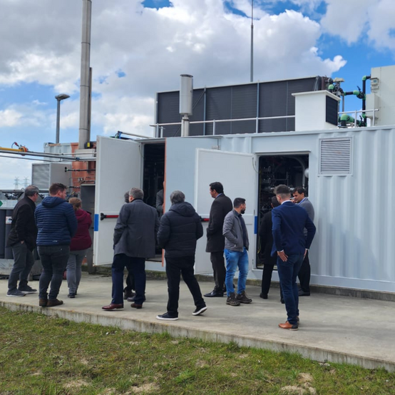 Após o almoço, os participantes seguiram para Raffinerie Heide GmbH, em Hemmingstedt, onde conheceram os projetos WESTKÜSTE100 & HySCALE100, voltados para a aplicação de hidrogênio verde em processos industriais. A visita incluiu um tour guiado (dentro do veículo) pela área de produção da refinaria.